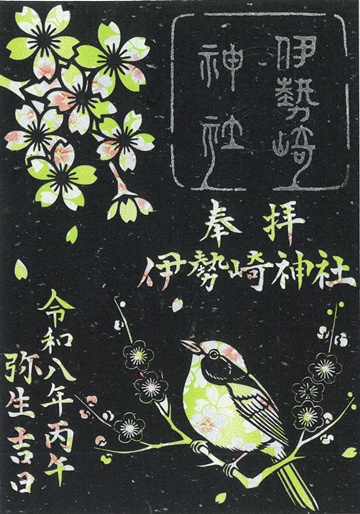 春らしいデザイン(うぐいす、桜、梅)と和紙で奉製いたしました。2か月間の頒布なので、諸々混在しているのは御愛嬌ということで。